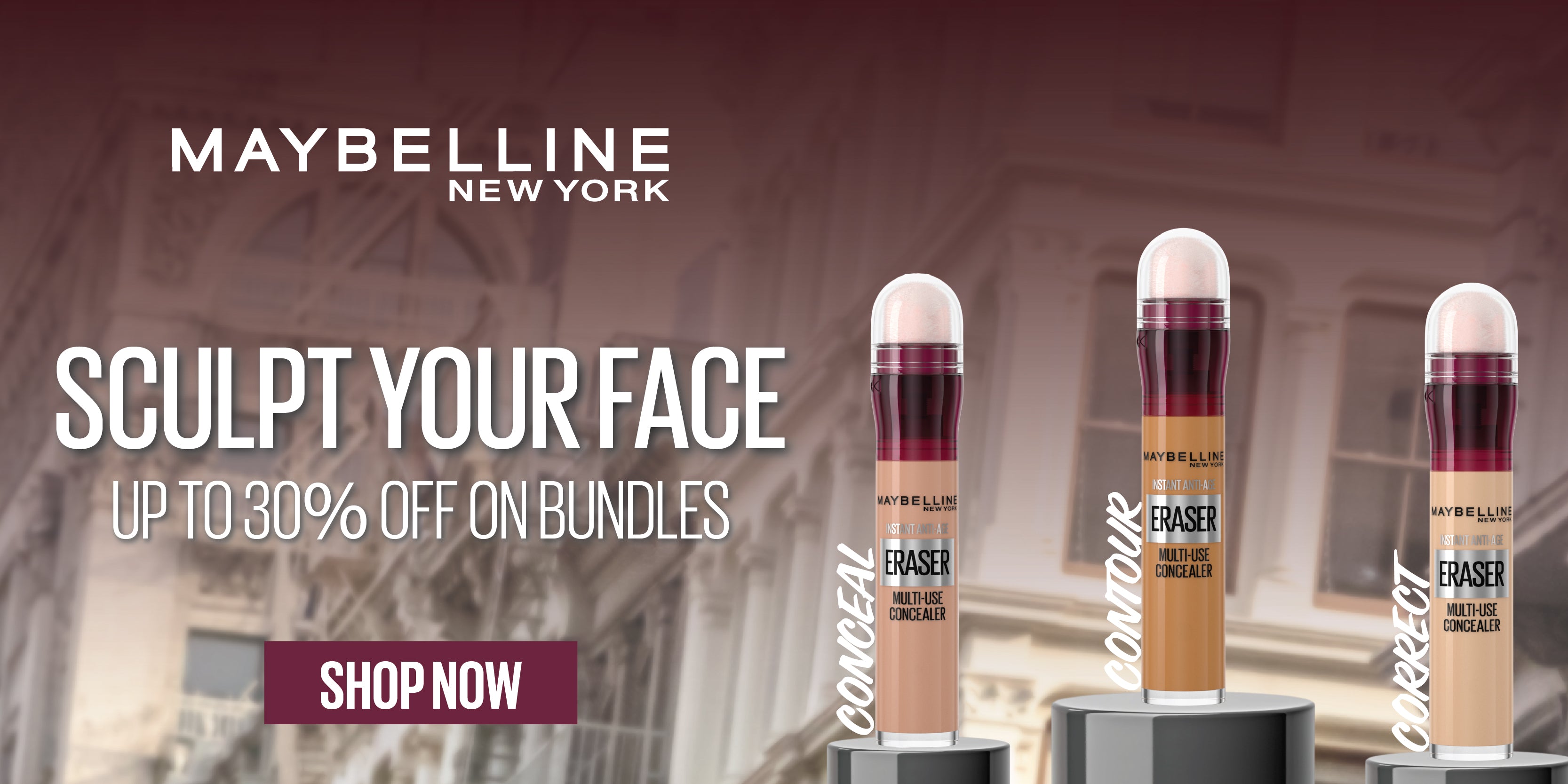 -20% Maybelline eraser concealer + Lumi Matte Foundation 30ml + SunKisser Blush and Bronzer