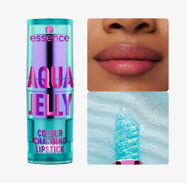 Get ready for a lip transformation with the essence AQUA JELLY COLOUR CHANGING LIPSTICK! With its mesmerising turquoise jelly texture and glitter twist, this lipstick is a true visual highlight. The pH-reactive formula adapts to your lips, leaving a soft pink tint that’s perfectly unique to you. It also adds a touch of shimmer for a glowy finish, while the fruity scent makes every swipe a playful moment for the senses. It’s your lips – just more magical.