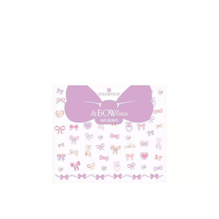 essence FaBOWlous Nail Stickers 01 Ballet Of Bows! x61 features an array of self-adhesive pearls and a charming bow design, perfect for adding a touch of elegance to your nails. With around 60 pieces included, these stickers are designed for simple application, allowing you to achieve stunning nail art effortlessly.