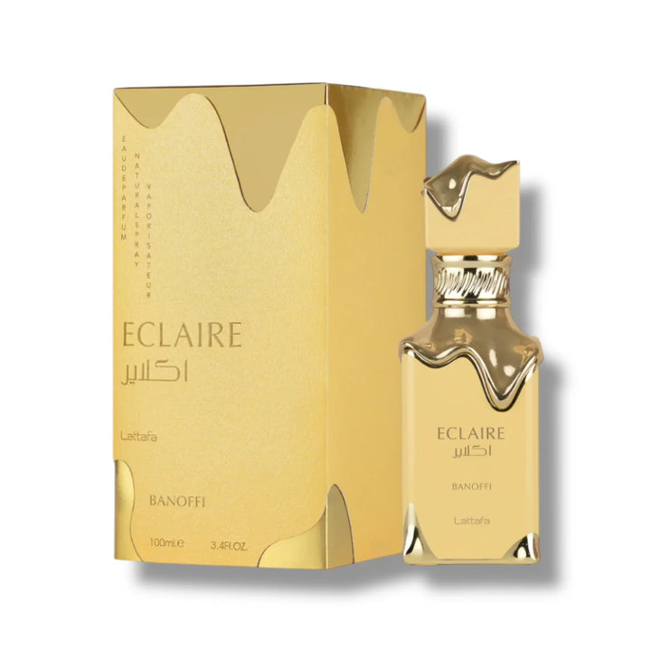 Eclaire Banoffi by Lattafa is a gourmand fragrance inspired by the classic banoffee dessert. The composition opens with notes of banana cream and dulce de leche, transitions to a heart of whipped cream and vanilla, and settles into a base of praline, biscuit, and musk. It was launched in 2025 alongside Eclaire Pistache as a flanker to Eclaire (2024).