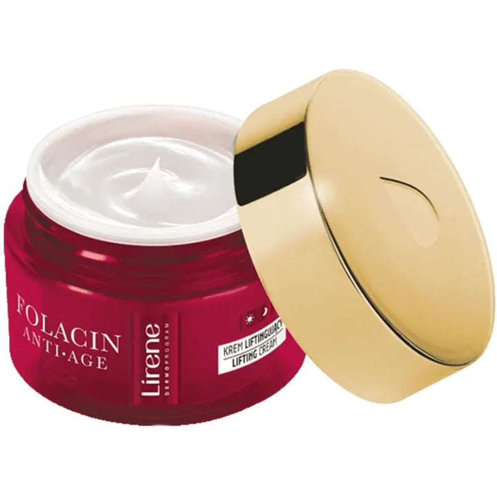 Lirene Folacin 50+ Lifting Cream is a luxurious anti-aging moisturizer designed specifically for mature skin. Formulated with Folacin and powerful lifting ingredients, this cream works to visibly reduce sagging and restore firmness. It deeply nourishes the skin, enhancing its elasticity and providing long-lasting hydration. With regular use, the cream helps to smooth out wrinkles, promote a lifted appearance, and improve skin texture. Ideal for those over 50, this lifting cream revitalizes the skin, giving it a youthful, glowing look. Suitable for daily use, it is the perfect addition to your skincare routine for firmer, rejuvenated skin.