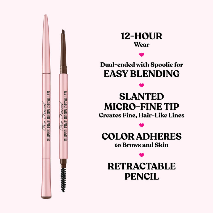This micro-fine, bevel-tipped brow detailer eyebrow pencil delivers smooth, creamy color with precise strokes, making it possible to mimic a professional microblading effect. Define arches, fill sparse areas, and shape brows for a natural or dramatic look that’s waterproof, smudge proof, and super longwearing.